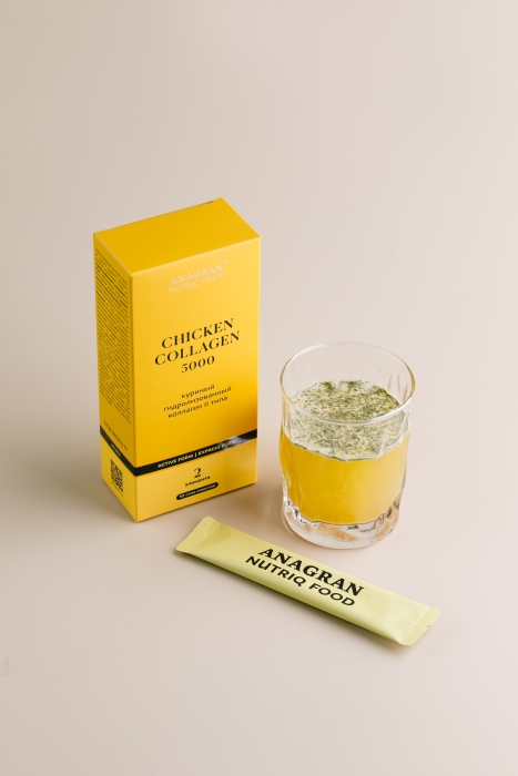 коллаген куриный II типа Sofos, бульон куриный, лук репка порошок, морковь, укроп листья, чеснок порошок, лавровый лист, кремния диоксид аморфный (агент антислёживающий).