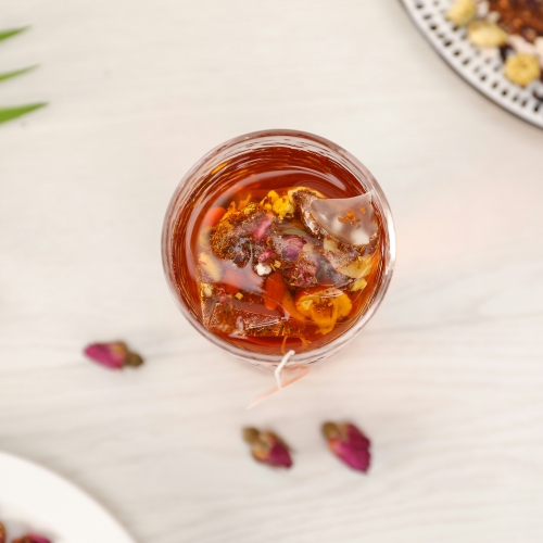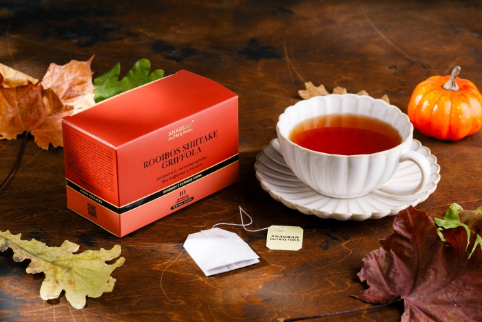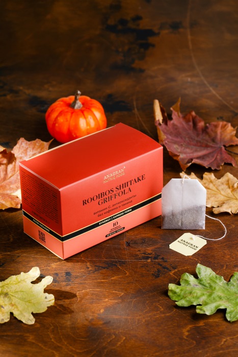 ройбуш, цветки гибискуса (каркадэ), плоды шиповника, ягоды можжевельника, лист смородины, лист малины, сок граната концентрированный, гриб шиитаке сухой в порошке, гриб грифола курчавая сухой в порошке.
