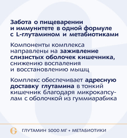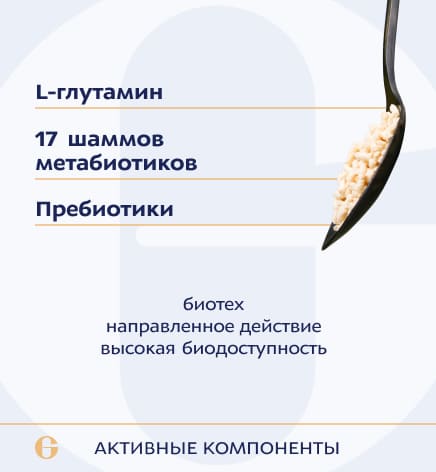 L-глутамин, лактулоза, комплексная пищевая добавка «Метафул (Metafull)» (комбуча концентрат, биомасса гидролизованная «УЛЬТРАЛИЗАТ ПЕПТИДНЫЙ» (содержит Bifidobacterium bifidum (ARTB-187), Bifidobacterium adolescentis (ARTB-127), Bifidobacterium animalis (ARTB-128), Bifidobacterium longum (ARTB-184), Bifidobacterium breve (ARTB-129), Bifidobacterium infantis (ARTB-189), Lactobacillus acidophilus (ARTB-130), Lactobacillus acidophilus (ARTB-177), Lactobacillus plantarum (ARTB-135), Lactobacillus plantarum (ARTB-175), Lactobacillus delbrueckii subsp.bulgaricus (ARTB-131), Lactobacillus salivarius (ARTB-136), Lactobacillus salivarius (ARTB-142), Lactobacillus rhamnosus (ARTB-183), Lactobacillus rhamnosus (ARTB-180), Lactobacillus helveticus (ARTB-133), Lactobacillus helveticus (ARTB-174)), гуммиарабик, молочная кислота, гуаровая камедь (галактоманнан), ксантановая камедь (глюкоманнан)), ароматизатор натуральный клубника+киви, лимонная кислота (регулятор кислотности).